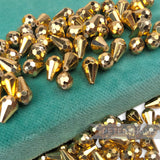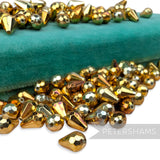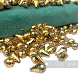 These incredible faceted sew-on beads are teardrop in shape and have one central sew-hole. Far superior when compared with some modern day equivalent. Their unique shape and colouring is perfect for headpieces. The faceted pattern on the low half of the bead is made up of tiny hexagon shapes.