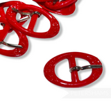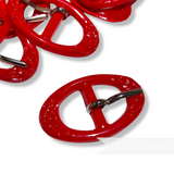 This vintage buckle is so sweet! Oval in shape, it has a flower motif at each end and comes with a silver pin for straps. Using ribbon? Simply remove the pin with a pair of pliers. Dating to the 1960/70s, this buckle is slightly hollow on the underside which makes it super lightweight.