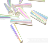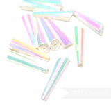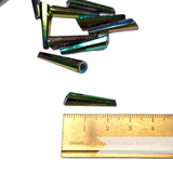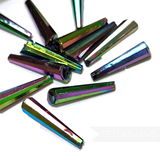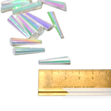 We love everything about these beads! Made in the 1960/70's, these A/B iridescent beads are asymmetrical in design with a faceted surface, creating a beautiful iridescent shine when it catches the light. It's the bead of our rainbow dreams!