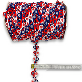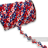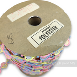 This makes us want to go to Wimbledon IMMEDIATELY! This trim comes in fabulous colourways and features criss-crossed tennis rackets. It has a great textural quality and has fine 'strings' on the racket. Dating to the 1960/70s, this vintage trim is 100% polyester.