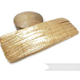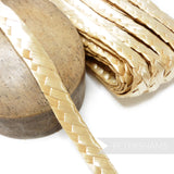 Made from super shiny flat straw, it has been woven into a chevron pattern and reflects the light so amazingly we have been calling this hank of braid a 'bar of gold'. Completely hand woven, it would have taken great time and skill to make a braid of this caliber.