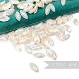 These vintage marquise jewel shaped sequins are everything! Made in France by Paillettes Au Coq, they date to the 1940s/50s and were rescued from an old haberdashery. Preserved for decades, they are ready to find their forever home!