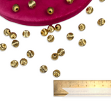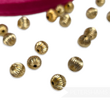 Made in the 1980/90's, these gold beads are made from a super lightweight metal which has been pleated to form little ridges on the outside of the bead. As these shapes are made from unfinished brass, you may find some of the pieces have a natural patina due their vintage nature. We got them from a closed down jewellery manufacturer, so they are fab quality and their vintage status gives them extra sustainability points!