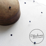Home / Products / 'Ava' 1930s/40s Super Fine Navy Blue Vintage Dotted Millinery Veiling - 1m