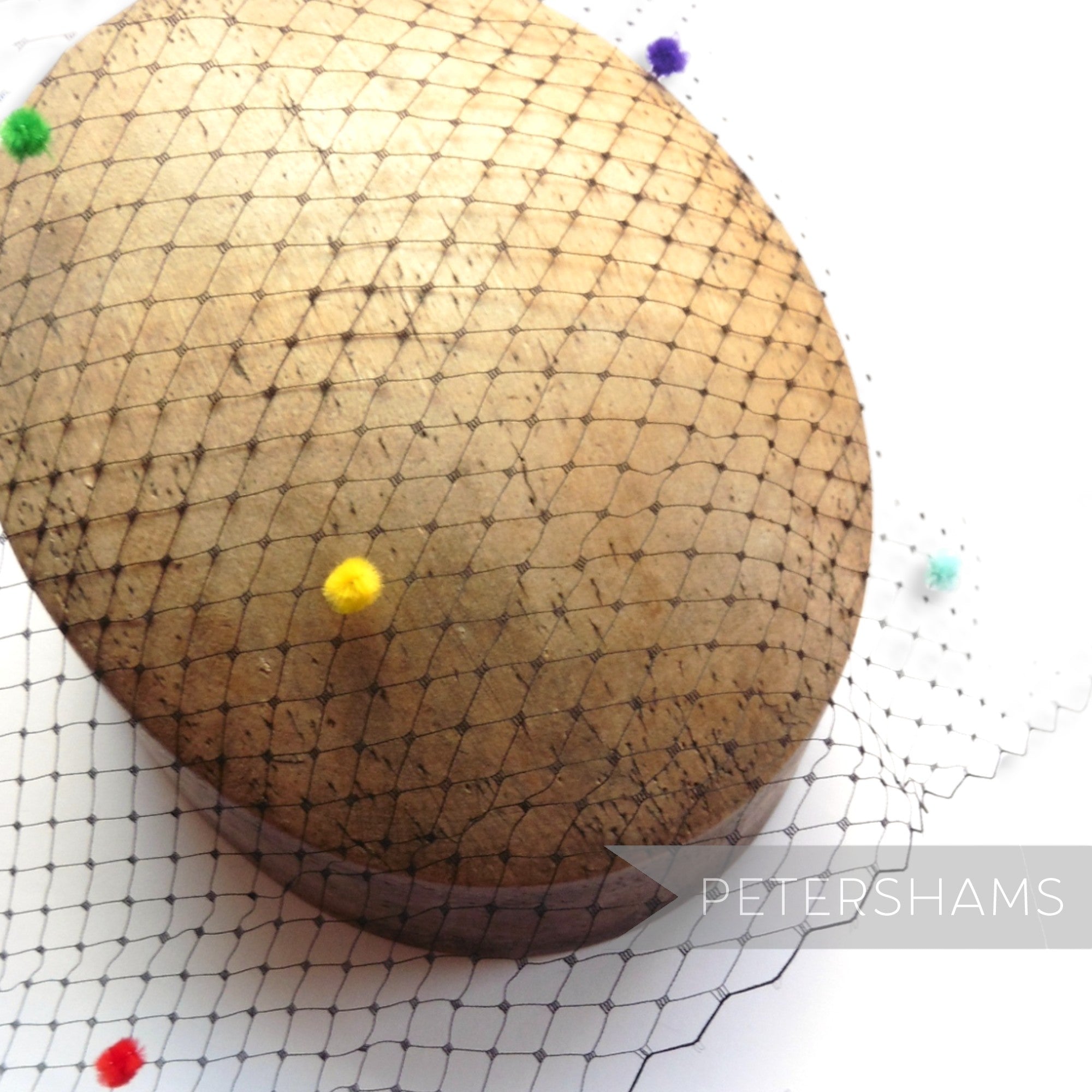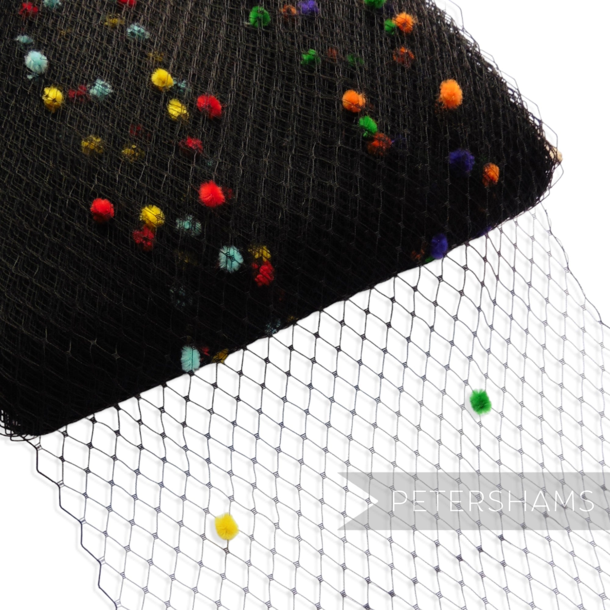 We love dotted veiling here at Petershams, so it was only a matter of time before we designed a rainbow version! Spotted throughout with assorted colour chenille dots it is sure to turn heads.