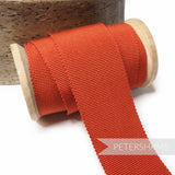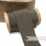 This 35mm (aka No.9) size millinery petersham is the ideal size for wrapping around hat crowns and making large, lush cockades. Made from 100% cotton, is has been made on traditional wooden looms and has a matt finish.