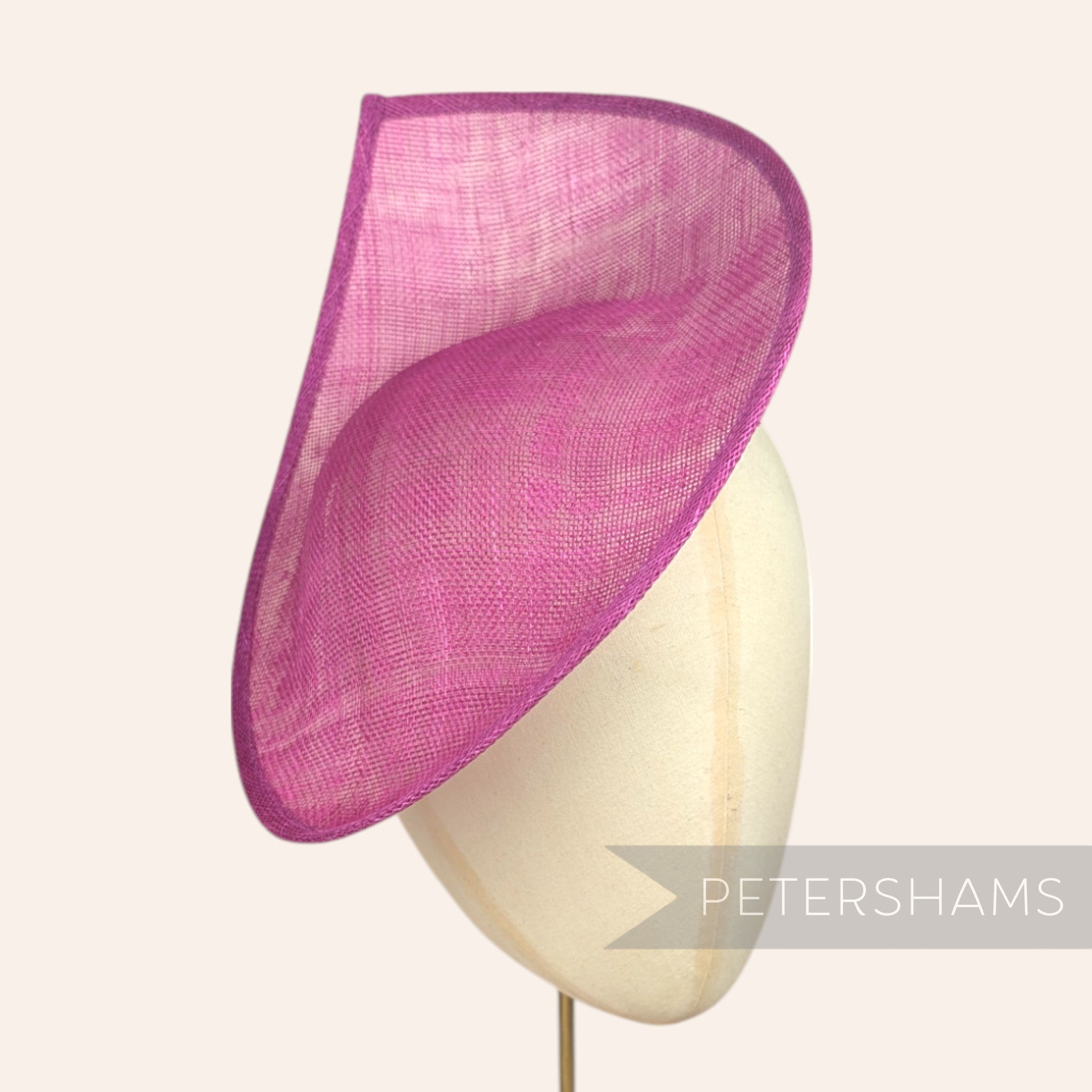 Looking for something of a modest size but with a little edginess? Then this may be the base for you. Our 'Diana' base is made from a double layer of stiffened sinamay, and has a lovely smooth crown indent where you can attach a headband or comb. Designed to be worn on the right hand side of the head, the 'flick' points towards the back.