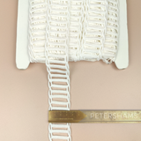 Off-white in colour, this trim can be used as a long piece or chopped up into several sections without the fear of fraying.