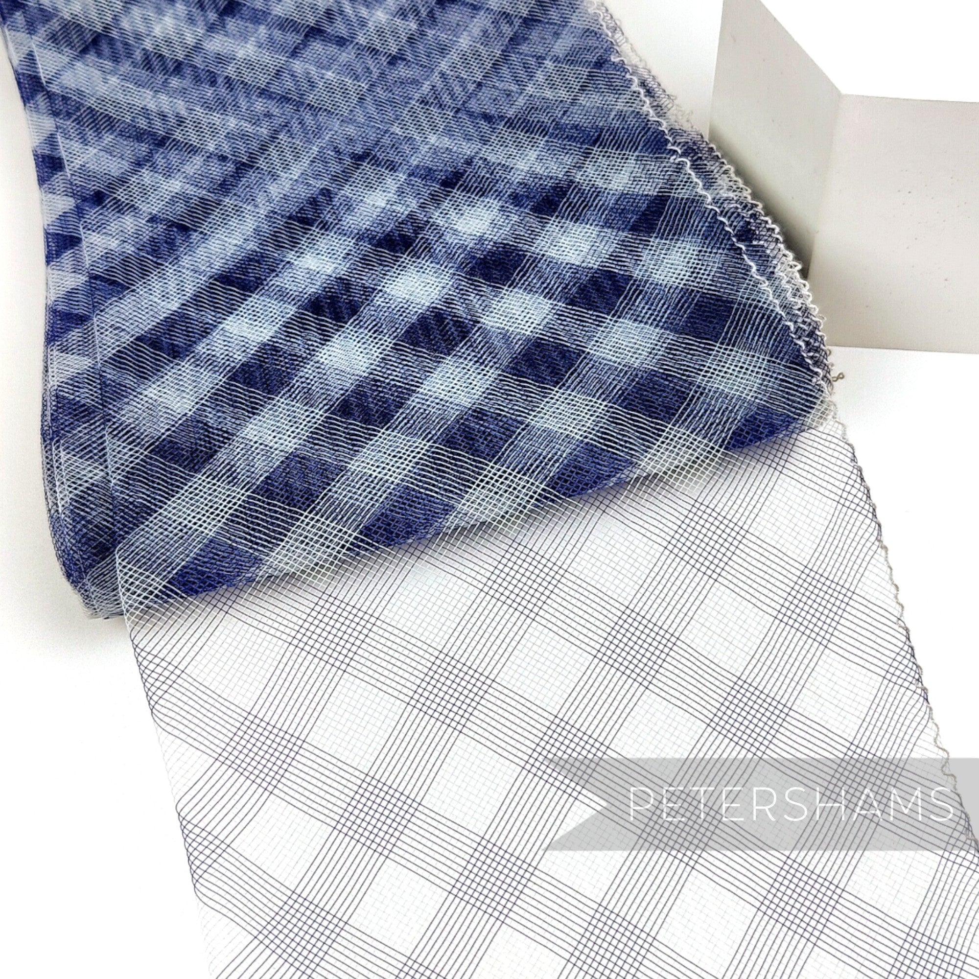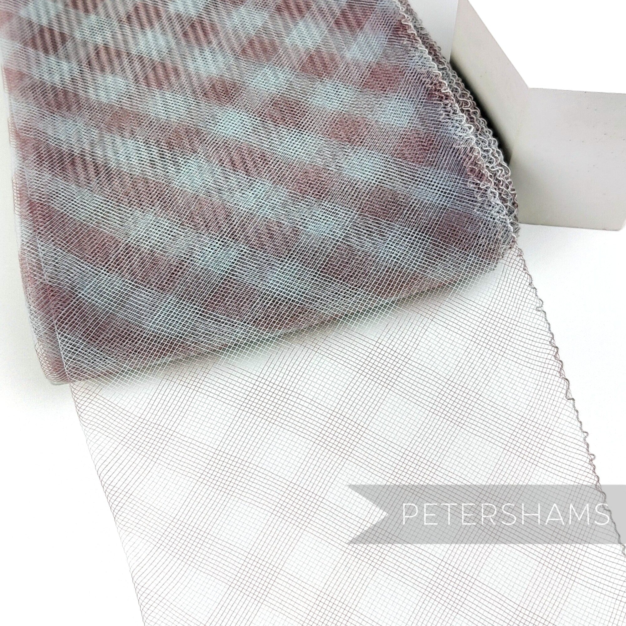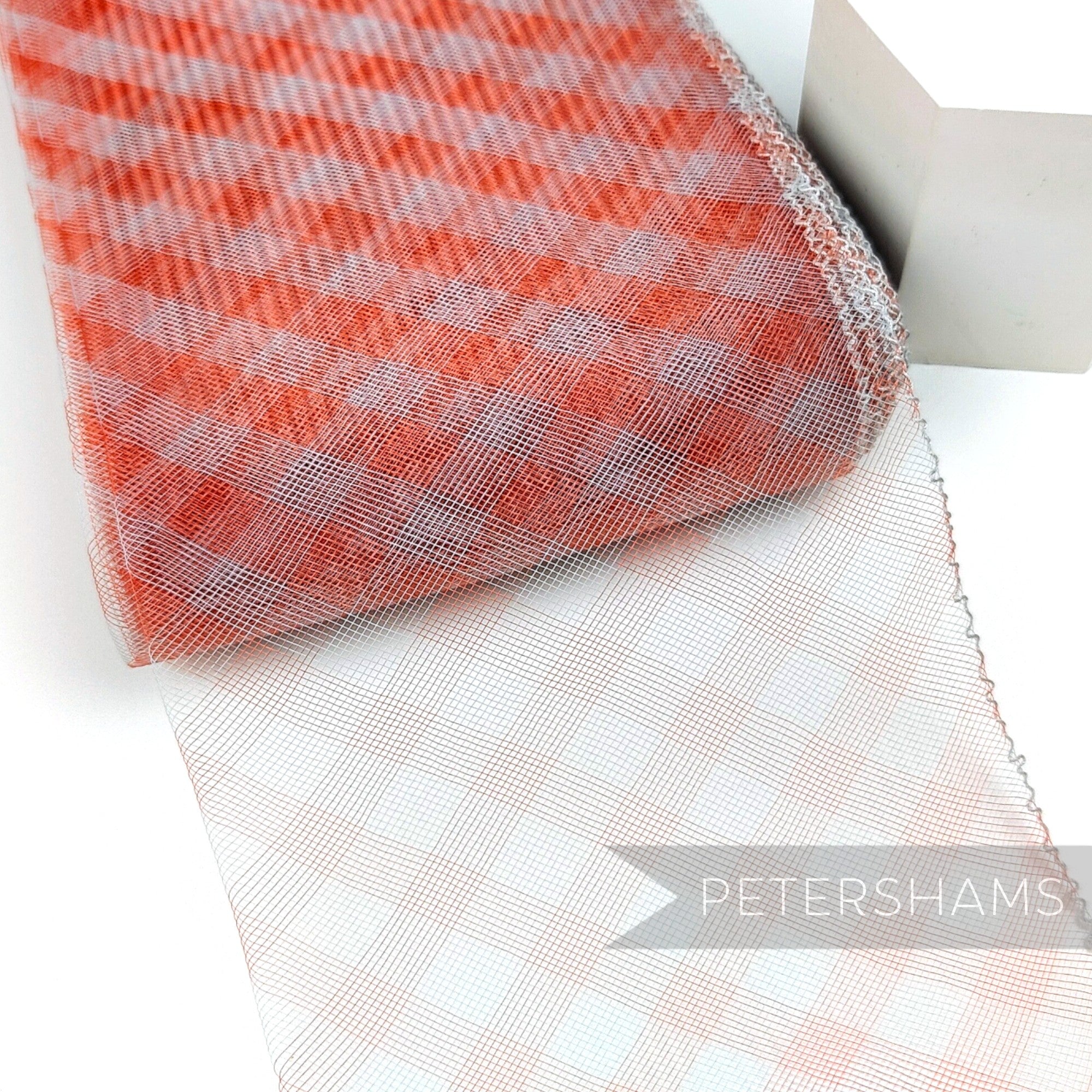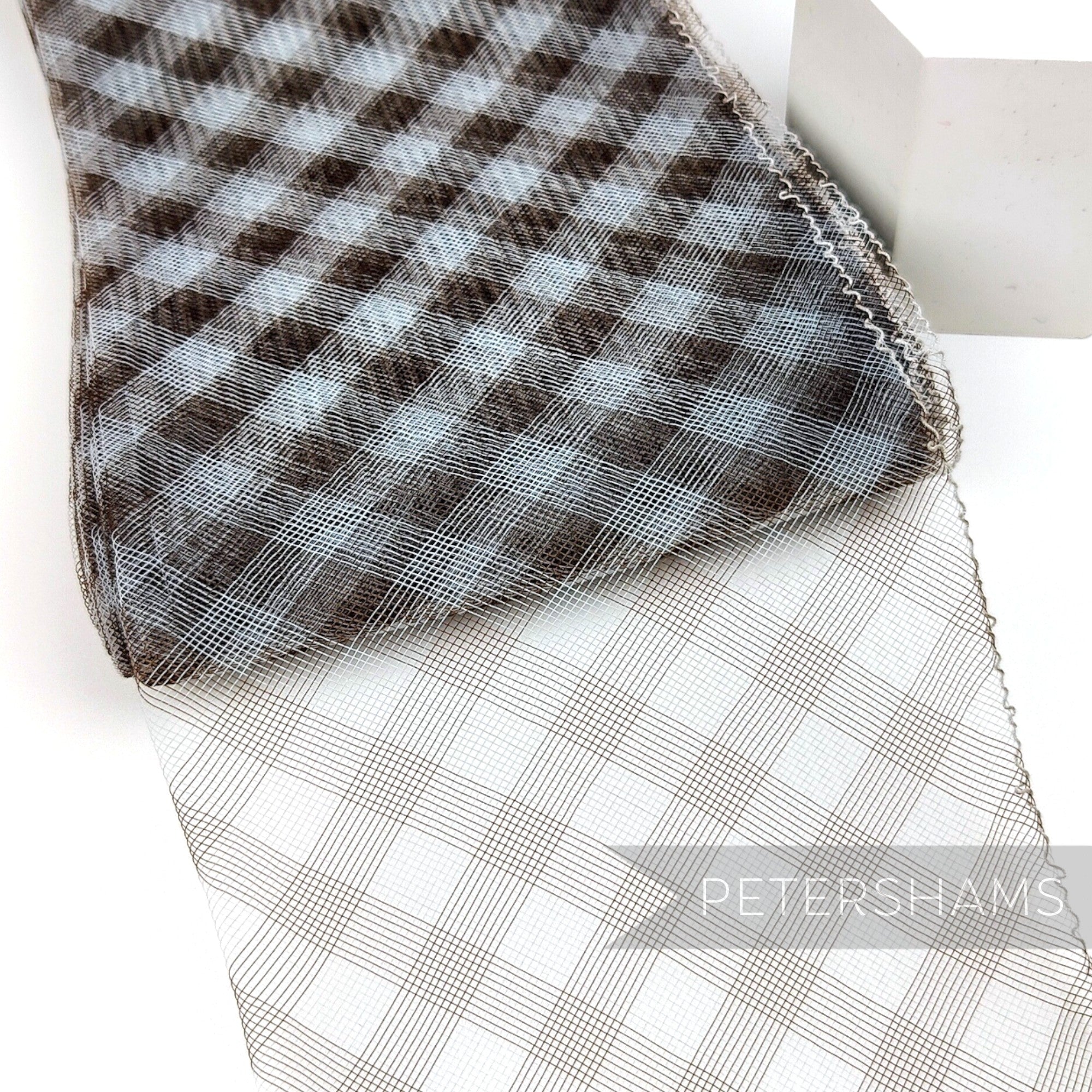 This petite checker pattern crin is woven onto pale grey crinoline with a contrasting colour to make for a subtle, elegant design. Swirl up to make a fabulous fascinator or try folding it in half to edge a brim!