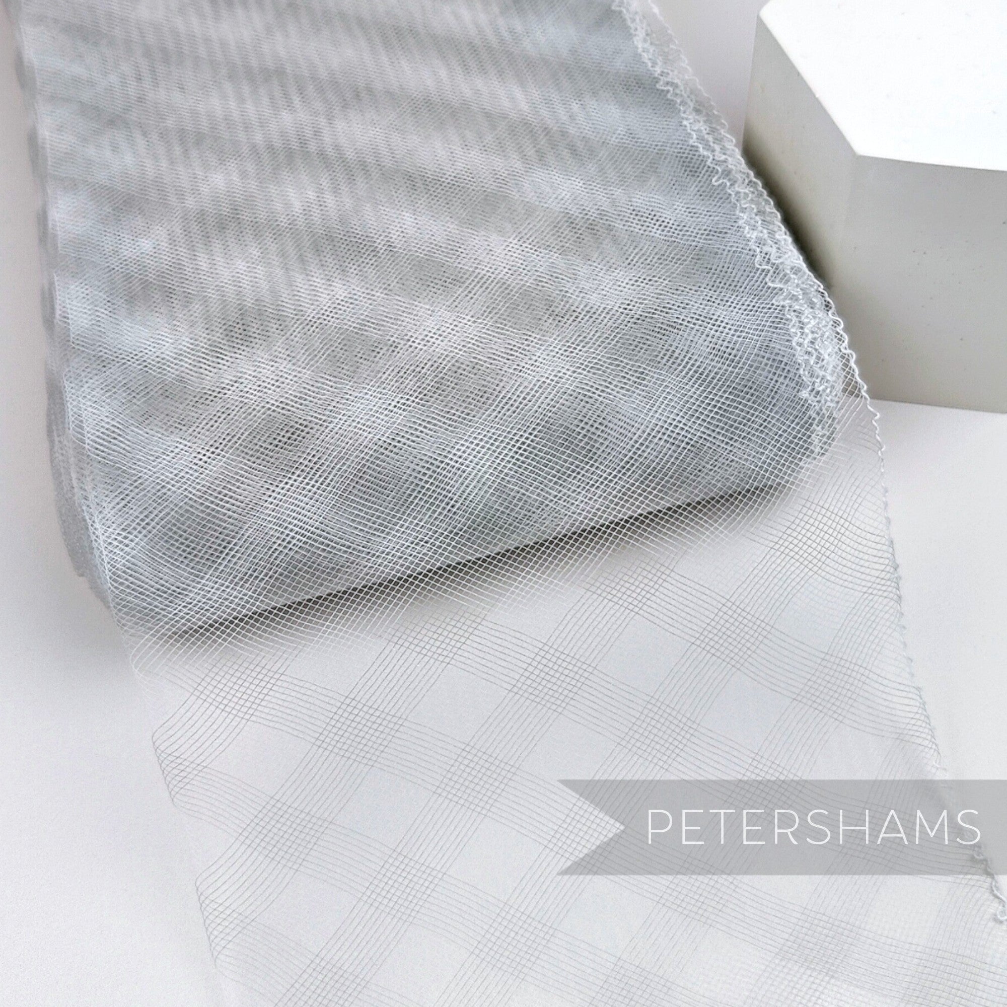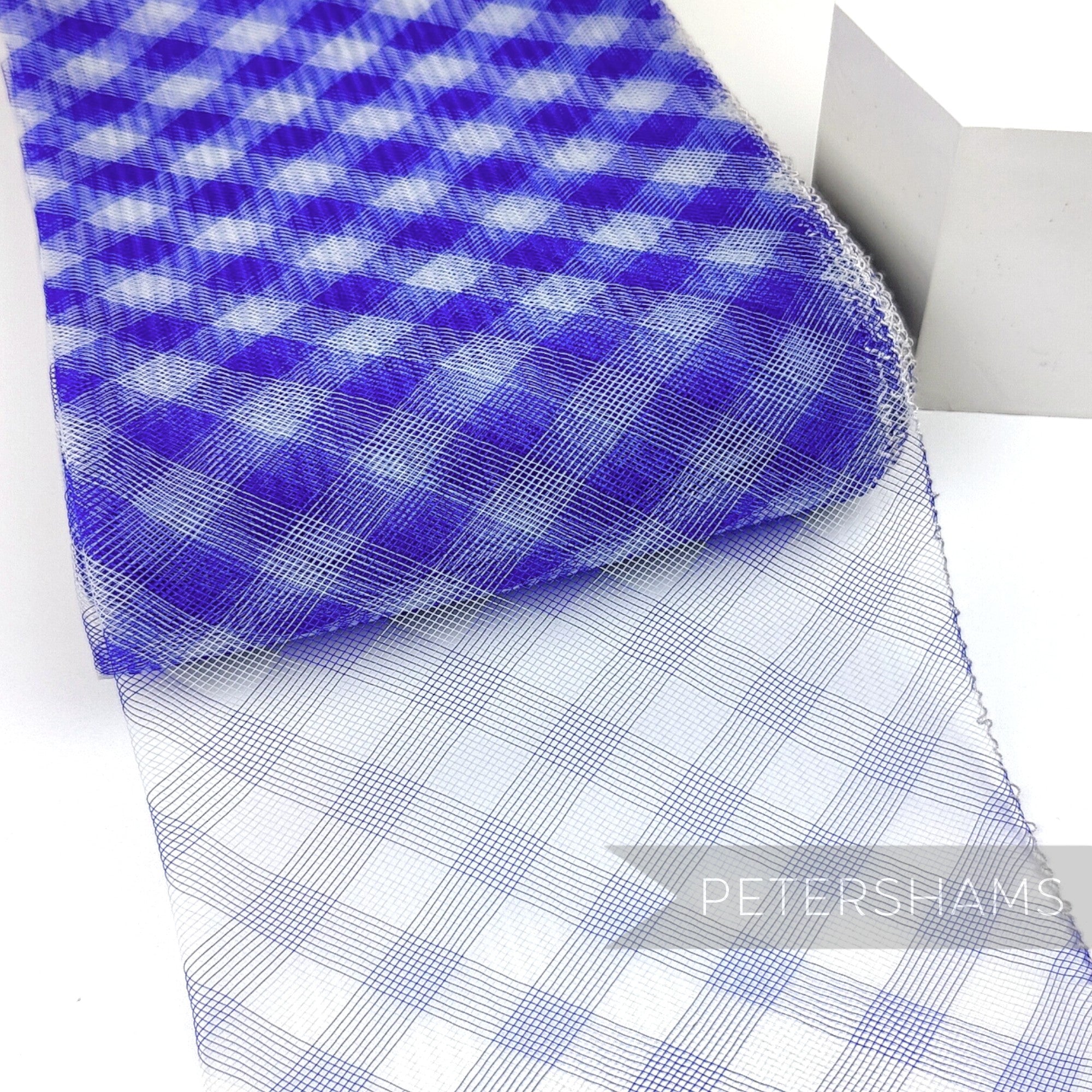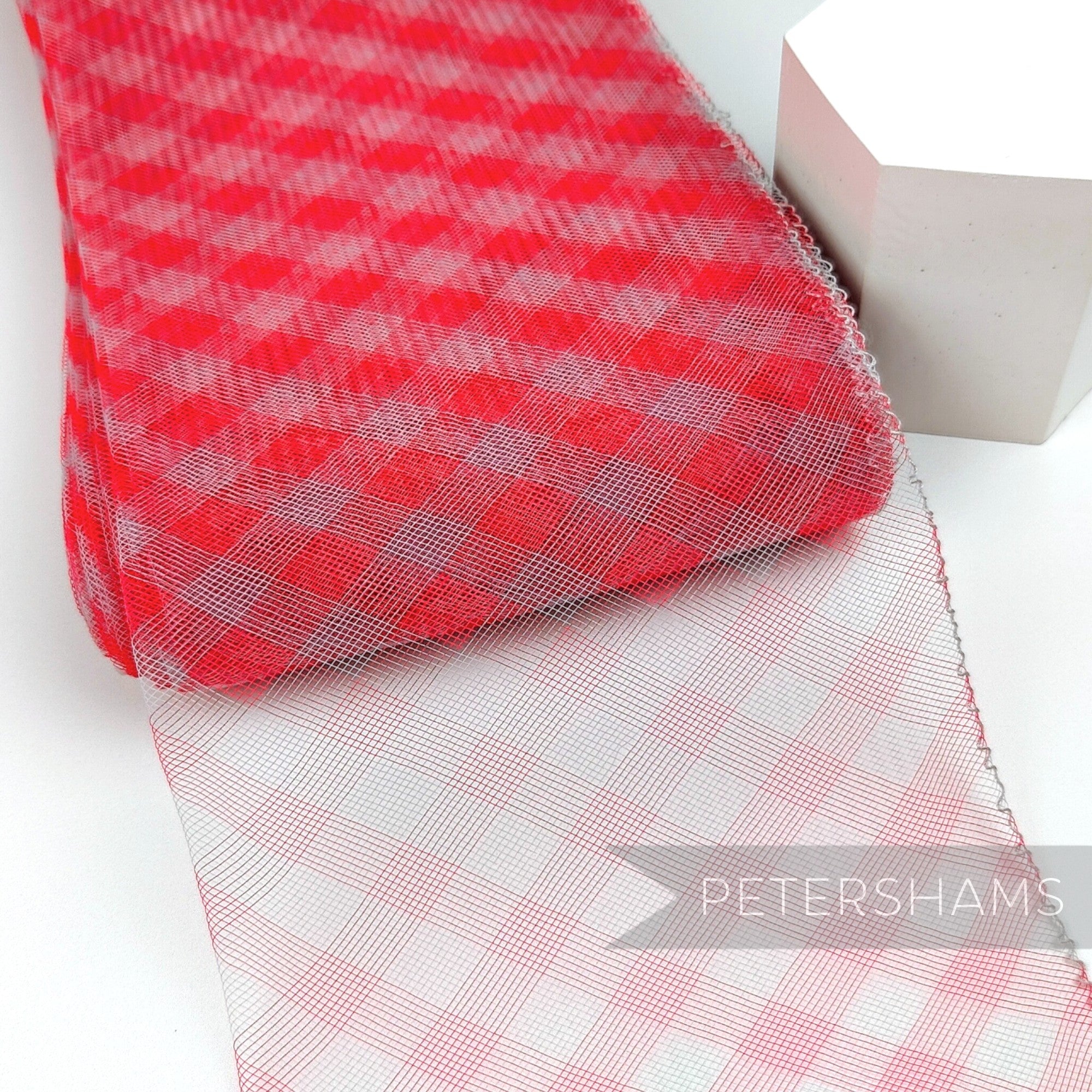 This petite checker pattern crin is woven onto pale grey crinoline with a contrasting colour to make for a subtle, elegant design. Swirl up to make a fabulous fascinator or try folding it in half to edge a brim!