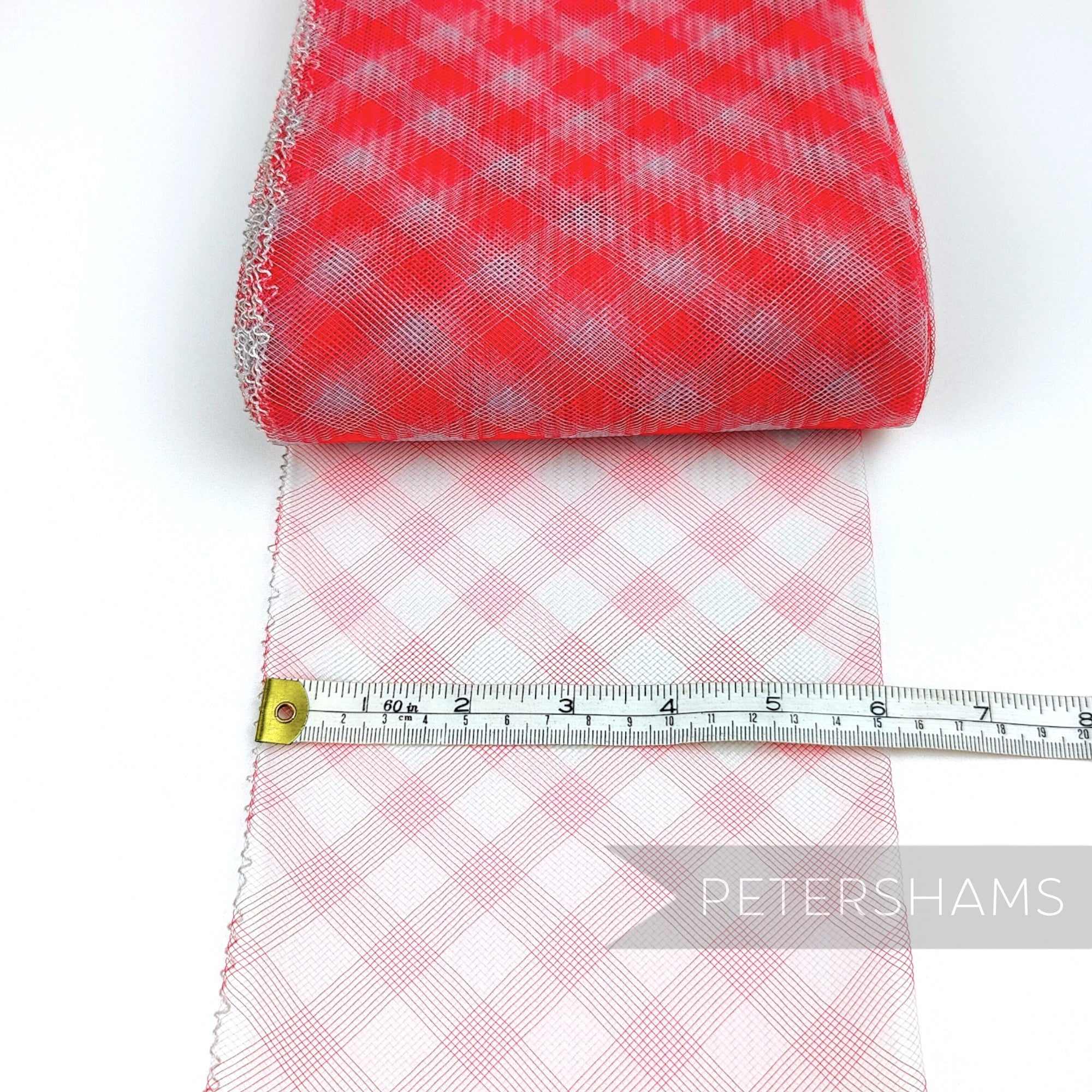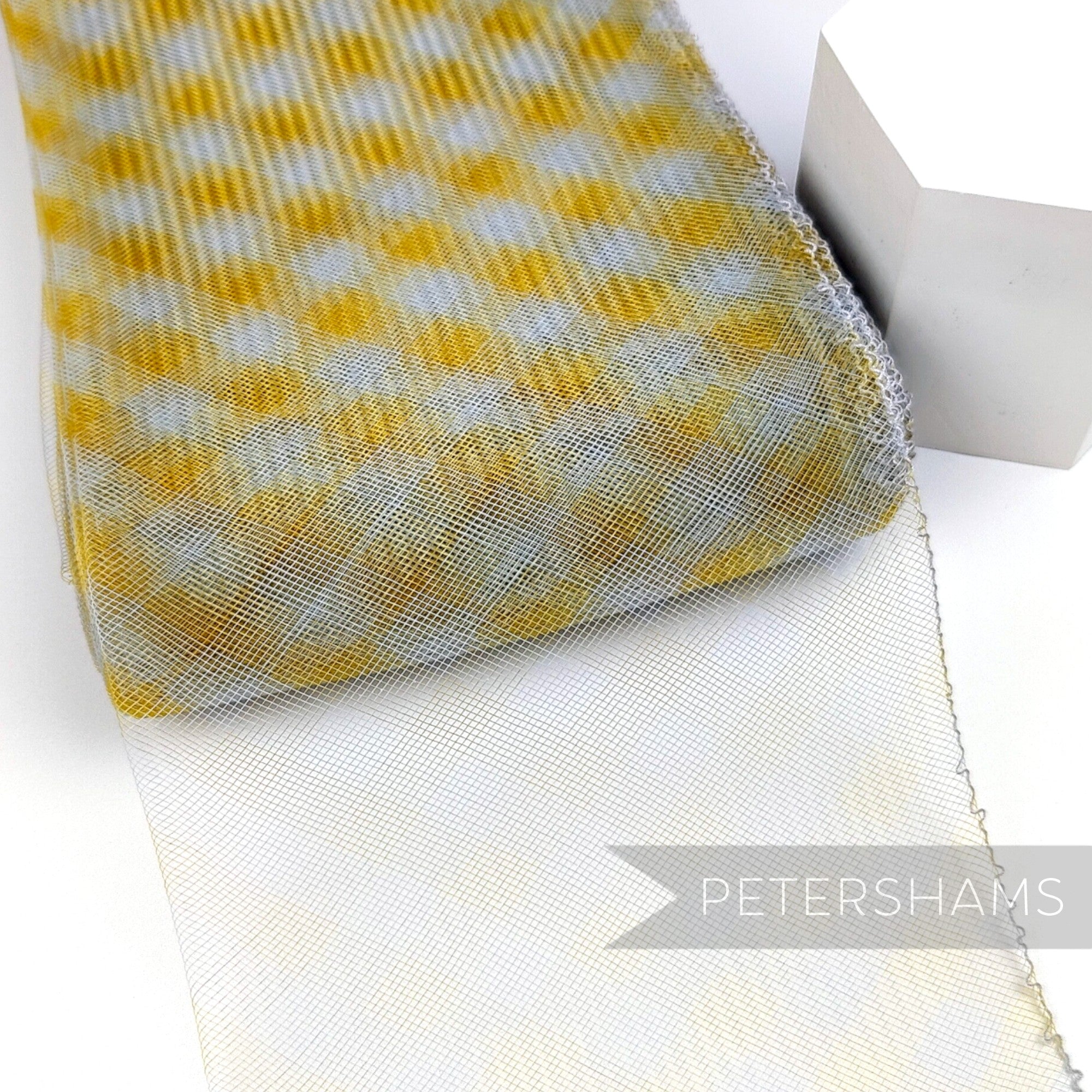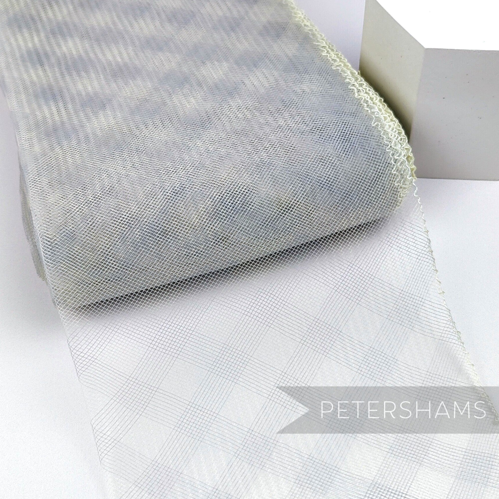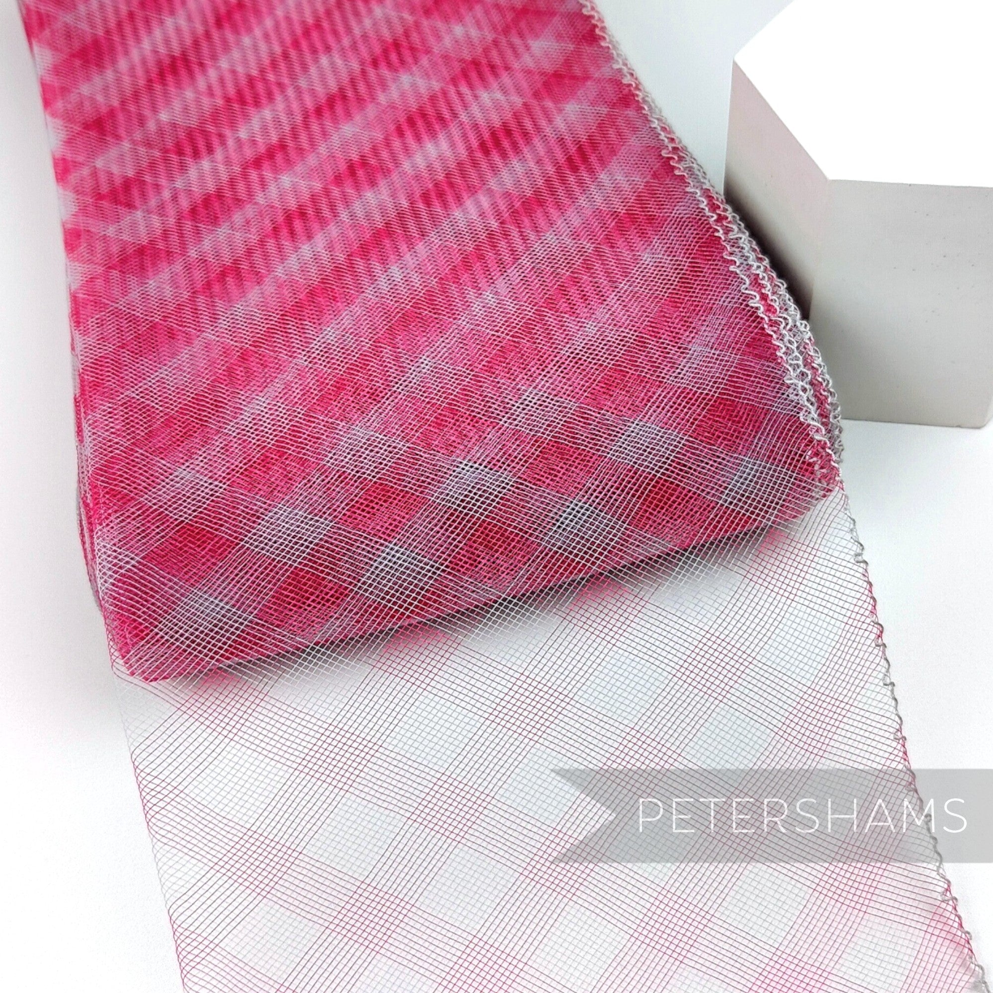 This petite checker pattern crin is woven onto pale grey crinoline with a contrasting colour to make for a subtle, elegant design. Swirl up to make a fabulous fascinator or try folding it in half to edge a brim!