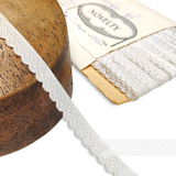 Made in Germany in the 1950s (possibly earlier!), this off-white trim features a shiny starburst design finely embroidered onto cotton. It's petite size makes it ideal for smaller craftwork.