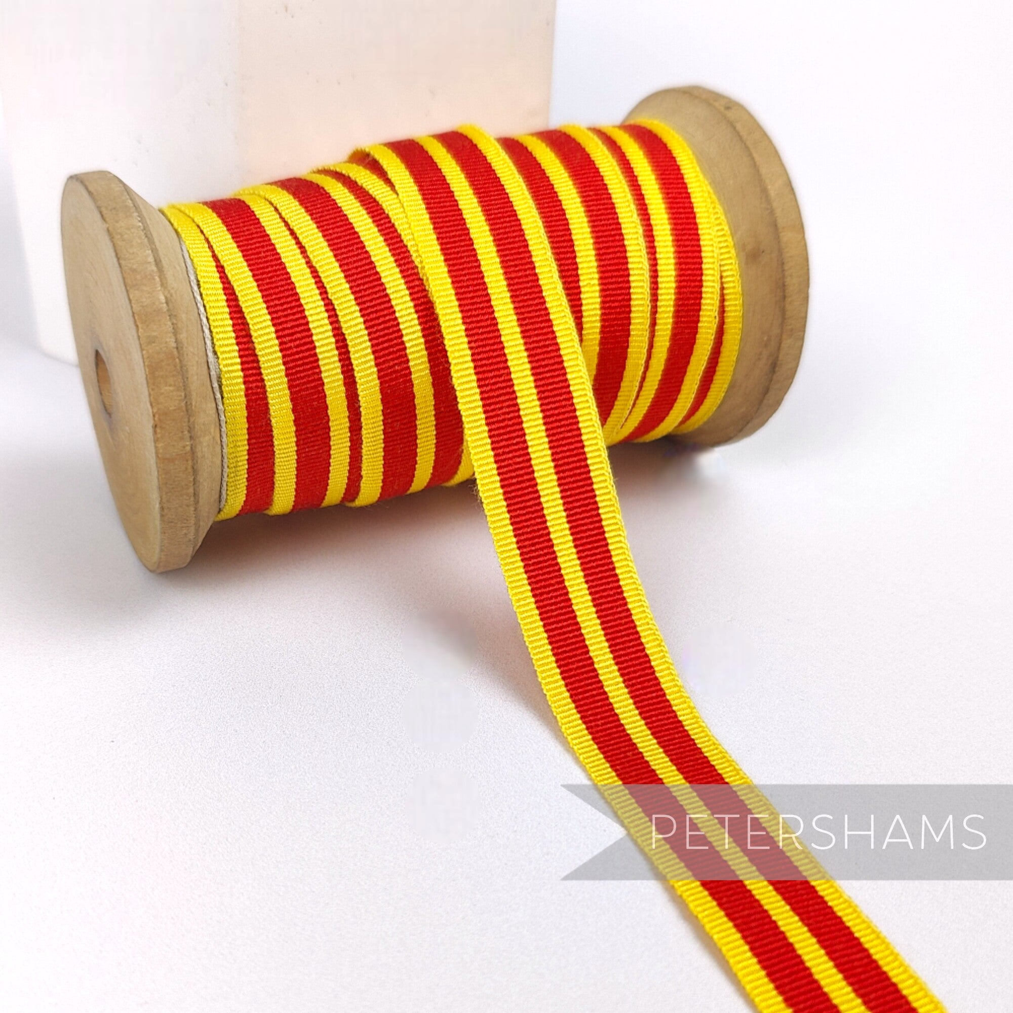 Made by Toye, Kenning & Spencer, this ribbon has a bit of age to it and dates to the 1980s/90s. Made in England!