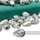 Wow wow wow. These incredible beads have a wonderful pine cone-esque pattern on them, very unique! They have a dark silver/gilver tone to them and have one hole through the top of the bead. Far superior when compared with some modern day equivalent and their unique shape and colouring is perfect for headpieces, costuming and jewellery.