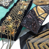 Black & Gold - A collection of mostly large motifs, some with velvet backings. A 'knotted' fully beaded one that would look incredible put onto a headpiece or used as a belt. All totally stunning!