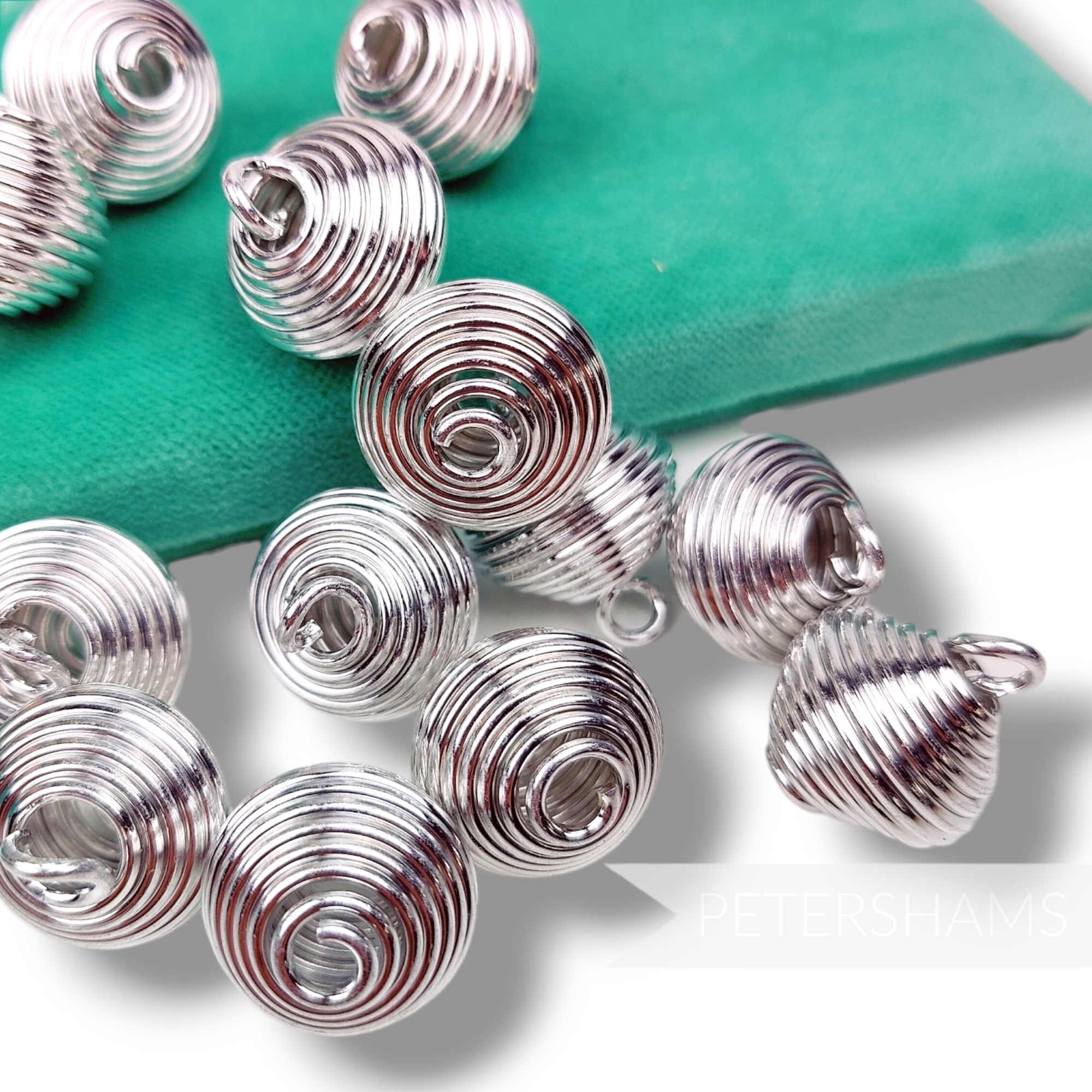 These sizeable 25mm twisted metal beads date to the 1990's and would make for a good tassel toppers.